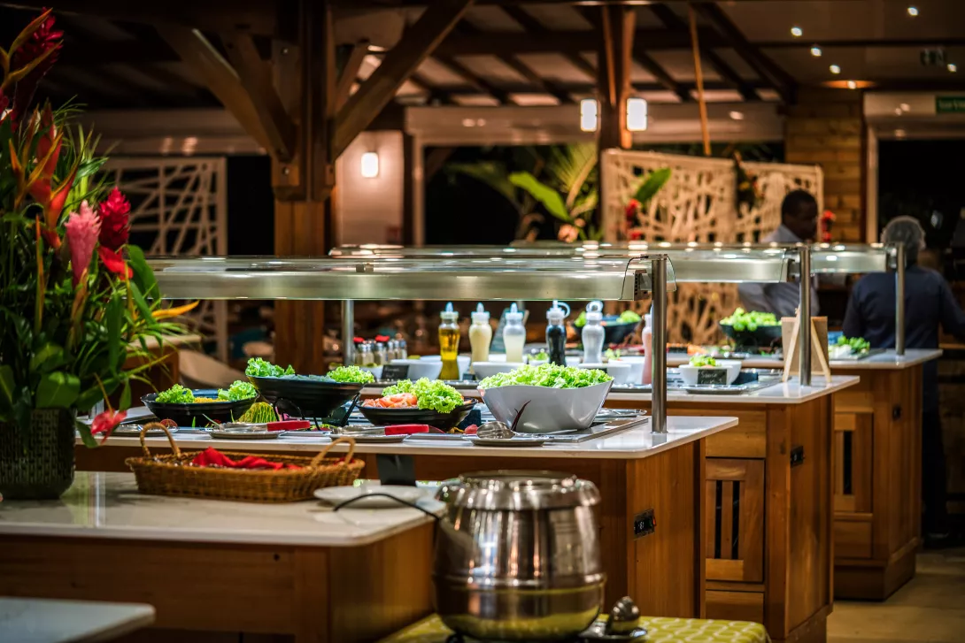 Face à la baie de Fort-de-France, la cuisine met à l’honneur des produits de la mer, comme les langoustes fraîches du vivier et le lambi, ainsi que des recettes traditionnelles inspirées de la Caraïbe,